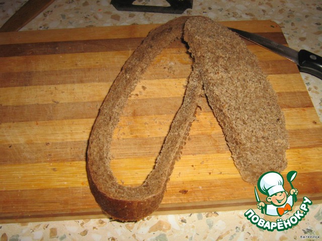 Далее вырезаем мякиш по периметру кусочка.