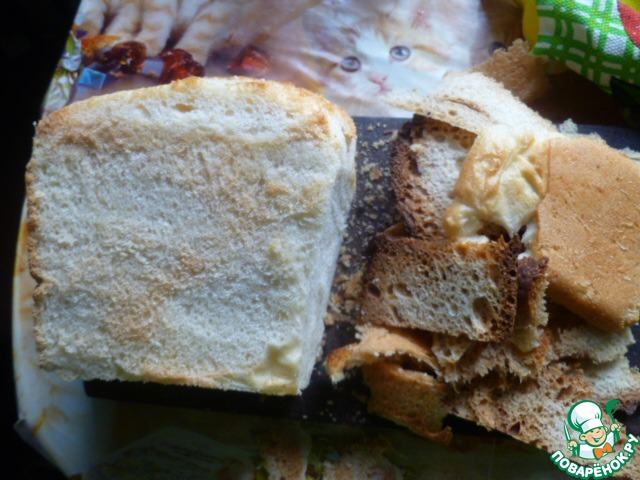 Дальше нужно срезать с хлеба всю корочку, оставив только мякиш.
