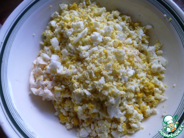 Вареное мясо мелко порезать или сделать, как я- просто перекрутить на мясорубке.