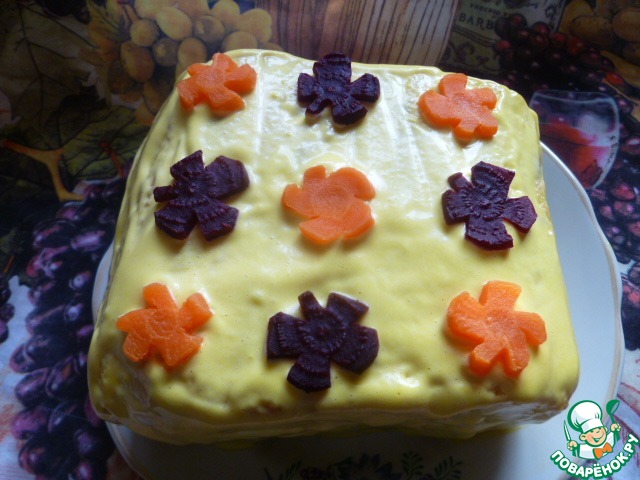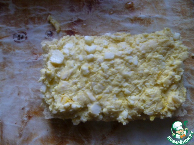 Затем разворачиваем и смазываем майонезом со всех сторон. У меня домашний, собственно приготовленный, из 1 стакана растительного масла, можно сказать, что не очень то и жирный.