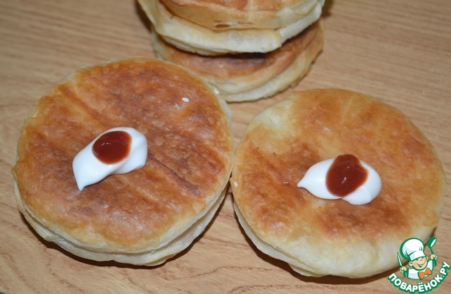 Выпекаем кружки согласно инструкции на упаковке до зарумянивания. У меня сильно поднялись, я потом их примяла пока горячими были