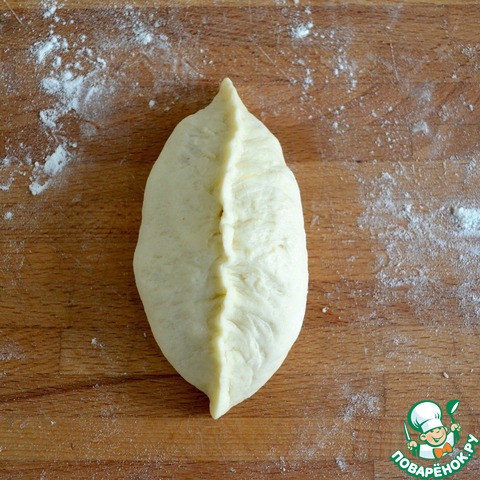 Выложить его на рабочую поверхность и поделить на равные части. Обычно получается 14-15 шт (в зависимости от размеров ваших пирожков).