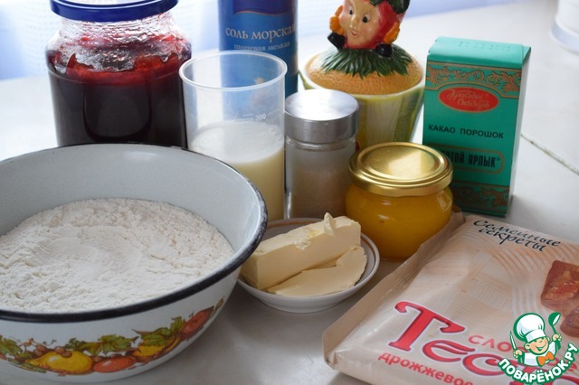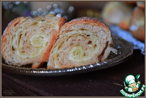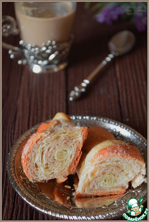 | Сегодня я хочу угостить Вас, поварята, необычно вкусными рогаликами из двух видов теста: шоколадного дрожжевого и слоеного дрожжевого. Рогалики получаются очень пышными, нежными и ароматными. В них интересно сочетается мягкость одного и хрусткость другого теста. Заходите в гости, будем пить чай! За идею спасибо кулинару Сальвии. |