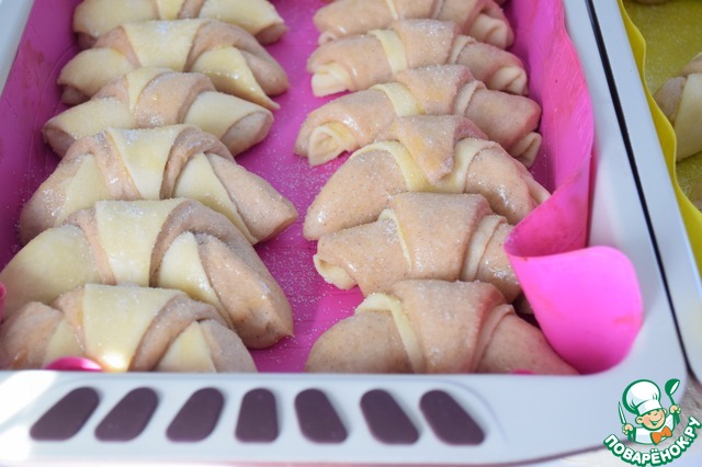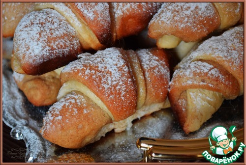 Охлажденные рогалики по желанию посыпать сахарной пудрой.