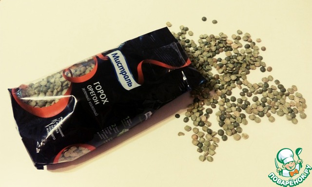 Горох " Орегон" фирмы " Мистраль " не требует замачивания, поэтому мы его ставим варить сразу. Я взяла большее количество воды потому, что горох нужно хорошо разварить и сделать пюре, для которого понадобится отвар.
