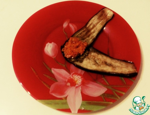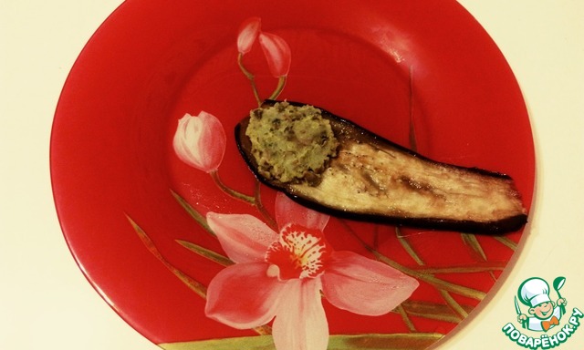 Затем накрываем вторым баклажаном и кладем ч. л. морковной начинки.