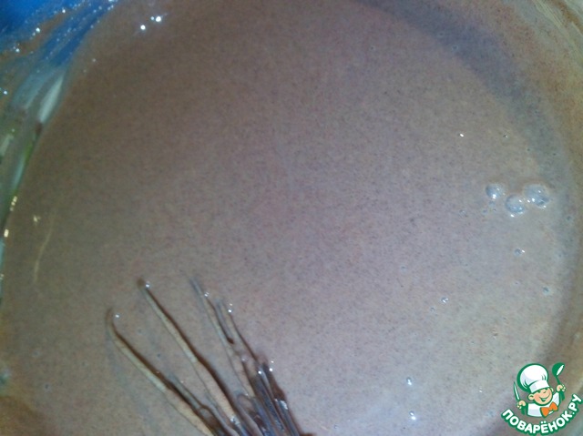 Духовку ставим на 170 гр. Для бисквита смешать все сухие ингридиенты и отдельно яйца, молоко и масло. Смешать сухие ингридиенты с сырыми.