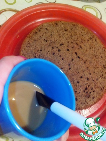 Для пропитки развести кофе с сахаром и добавить коньяк. Я ещё молочка чуть-чуть добавила.