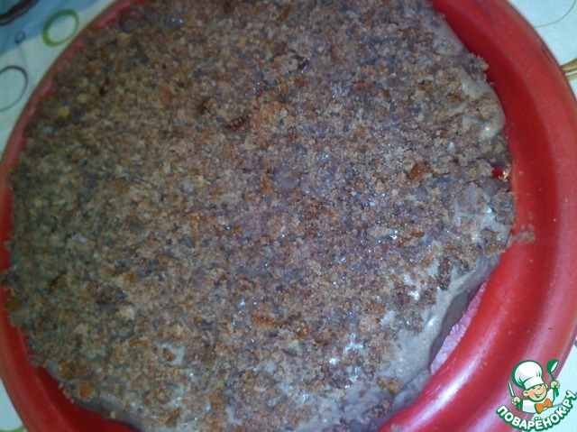 Посыпать бисквитной крошкой. Можно украсить по желанию чем угодно: кокосовой стружкой, орешками, конфетами, сахарной пудрой, ягодами... И убираем на ночь в холодильник.