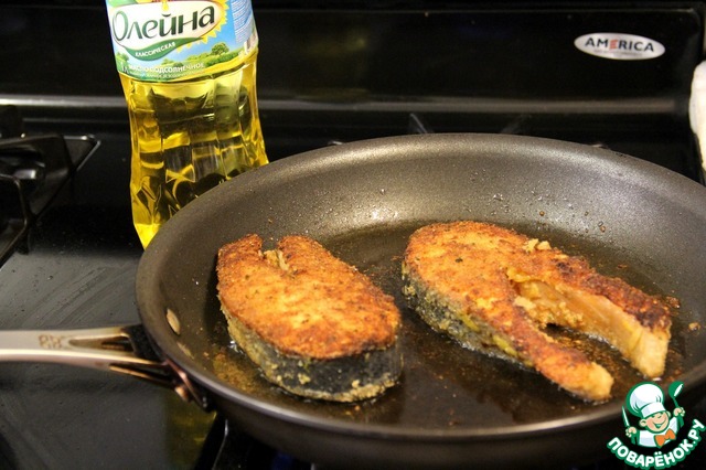 И обжариваем на растительном масле ТМ "Олейна" примерно по 2-3 минуты с каждой стороны. Затем накрываем крышкой и даем постоять 3-5 минут.