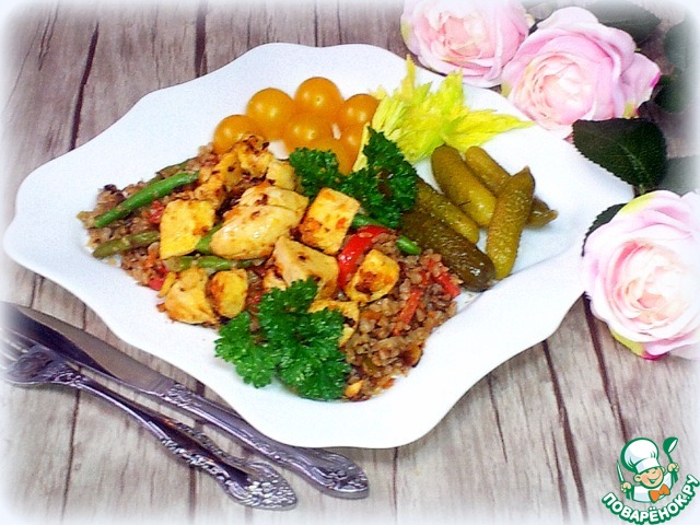 | Блюдо с гречей, овощами и грибами украсит постный стол своими красками и ароматами. Для не соблюдающих пост я приготовила не менее вкусную курицу. |