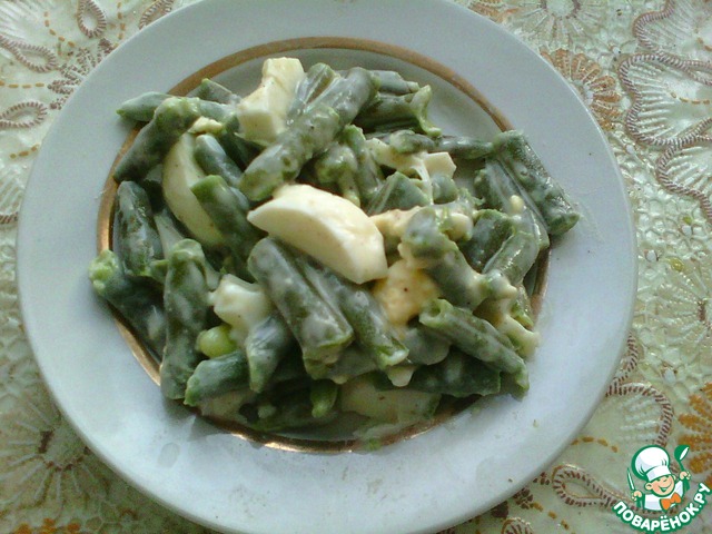 | Очень вкусный салат для любителей стручковой фасоли. Готовится быстро и не хлопотно, немаловажно и то что салат диетический на 100 гр. 70.8 ккал. |