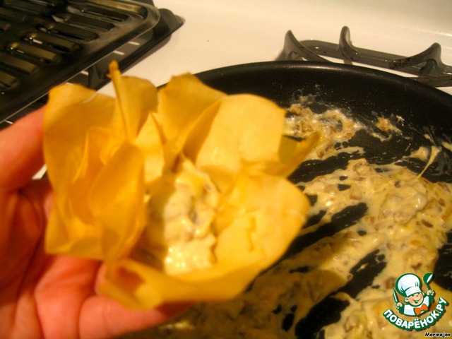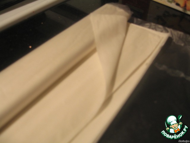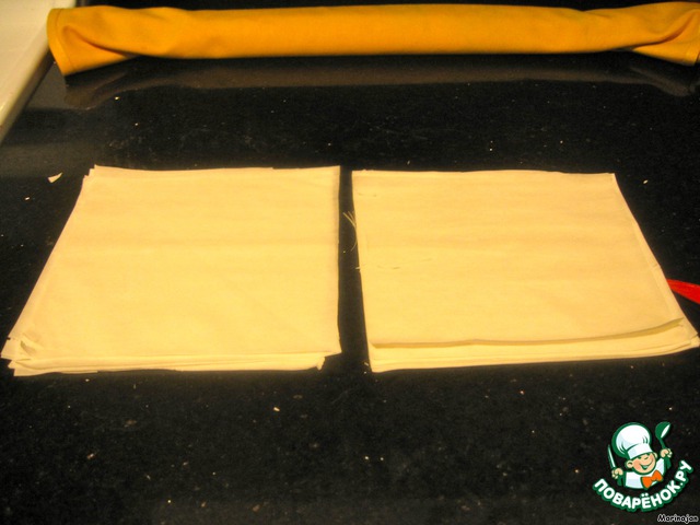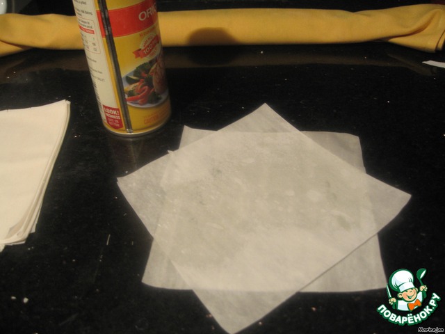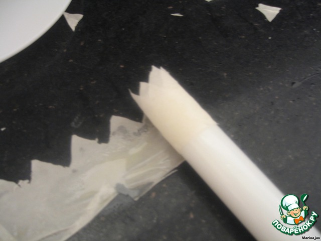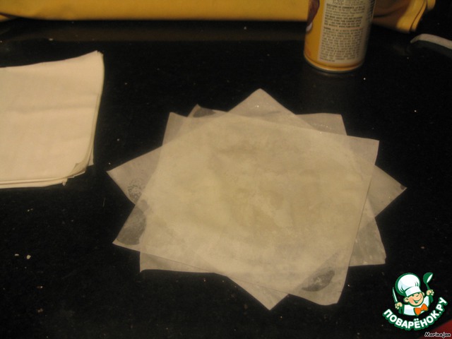 Тесто очень тонкое и быстро высыхает. Работать с ним надо осторожно, но быстро.