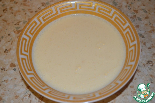 Разбавляем яйца сливками, присаливаем немного...