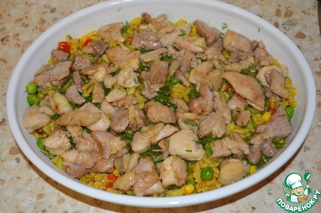 Теперь вернёмся к рису с овощами. Он уже готов, красивый, ароматный, жёлтенький)