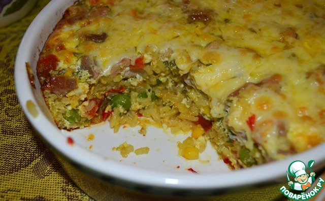 | Солнечная, яркая и вкусная запеканка! Готовится на основе гавайской смеси с рисом! Быстро и ароматно! |