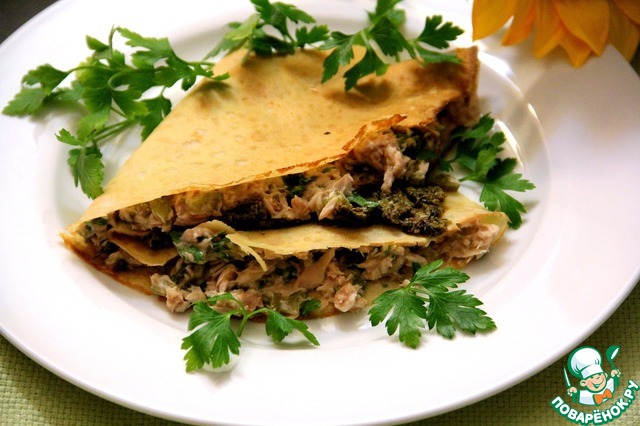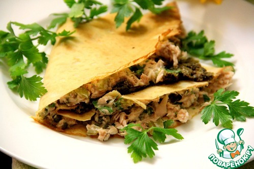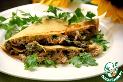 | Блины это одно из моих самых любимых лакомств. Предлагаю вам попробовать очень вкусные блины с начинкой из консервированного тунца и очень вкунсым соусом тапенада. Угощайтесь! |