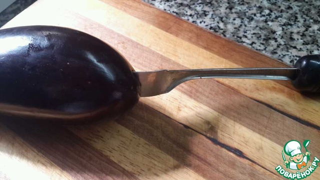 2 - конечно, есть специальные приспособления, но мы сделаем по-простому: насадить баклажан на длинную вилку,