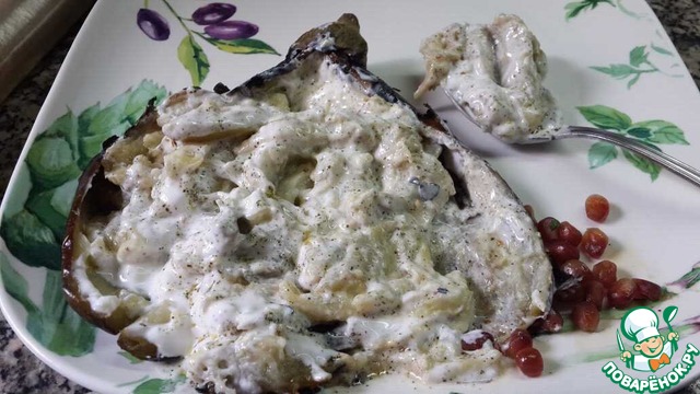 Тот, что с огня, накладывается ложкой, отделяя и немного выскребая мякоть из шкурки, хотя она норовит порваться и "угольки" попасть в блюдо. Но, как я уже говорила, угрозы для жизни в этом не наблюдается. Понятно, что небольшое/приемлемое количество. Я вам как доХтУр говорю.