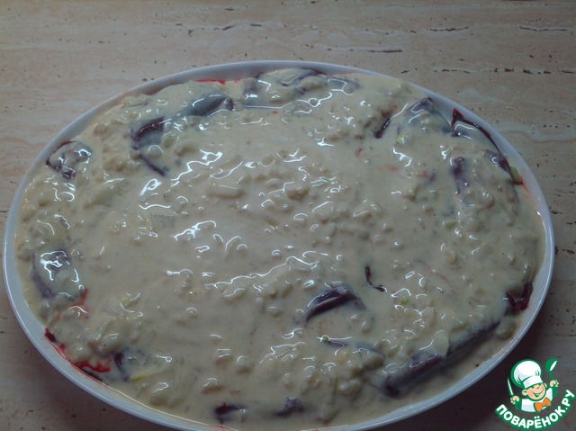 Маринад хорошо перемешали и заливаем им нашу печёночку. Отправляем её в холодильник на 30-40 минут.