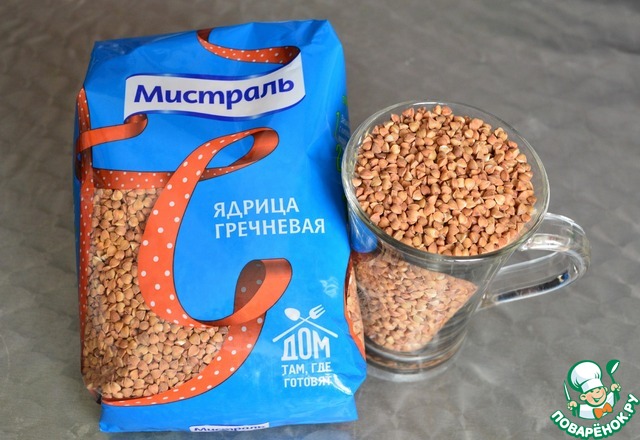 Отмеряем стакан гречневой крупы (ядрица ТМ Мистраль).