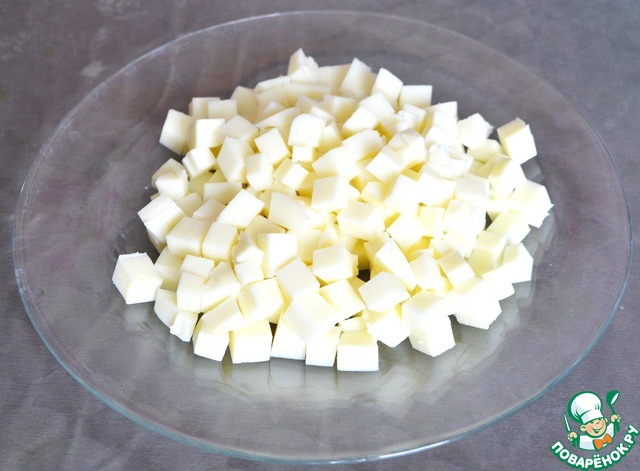 Соли надо поменьше, так как сыр солёный.