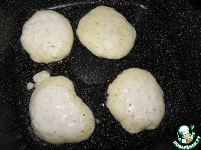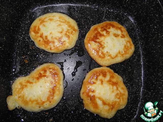 Разогреть растительное масло на сковороде, выкладывать оладьи ложкой, накрыть крышкой и готовить на небольшом огне