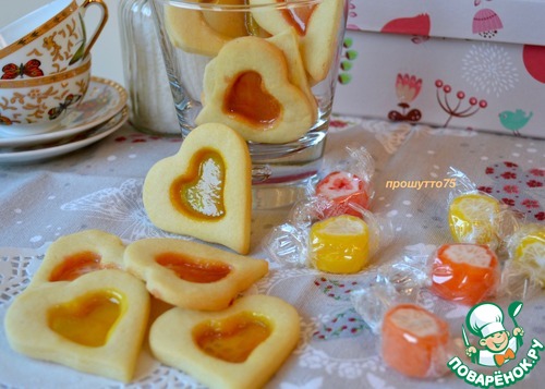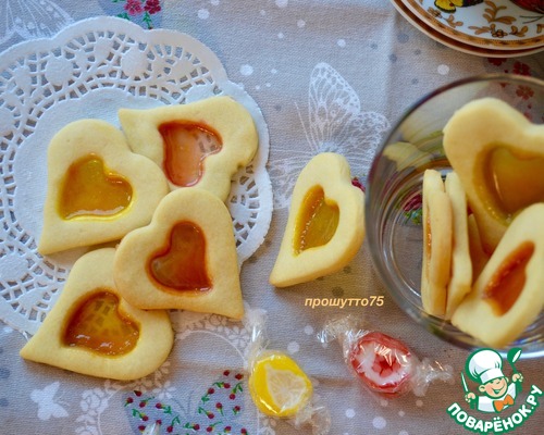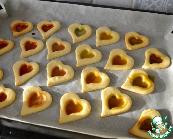 Поставить противень в горячую духовку и выпекать около 10 минут, до готовности печенья! Не передержите. Леденцы расплавятся и заполнят серединку. Готовое печенье достать из духовки и дать ему полностью остыть (!), прежде чем снимать его с противня!