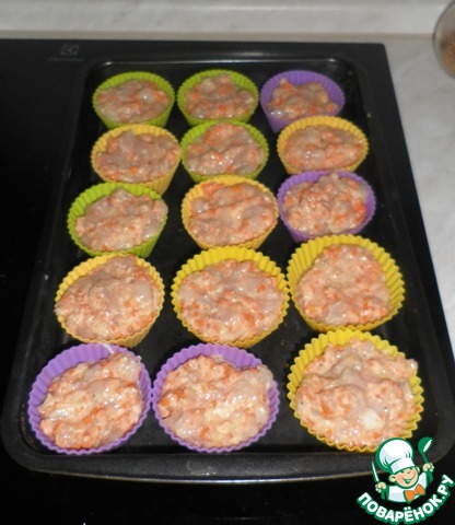 Раскладываем наш фарш по силиконовым формочкам (для кексов).