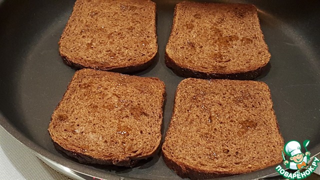 Обжарить чёрный хлеб в небольшом кол-ве оливкового масла.