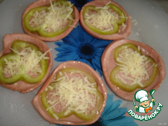 Я положила в корзинку по кружочку болгарского перца, а в центр натёртый сыр.