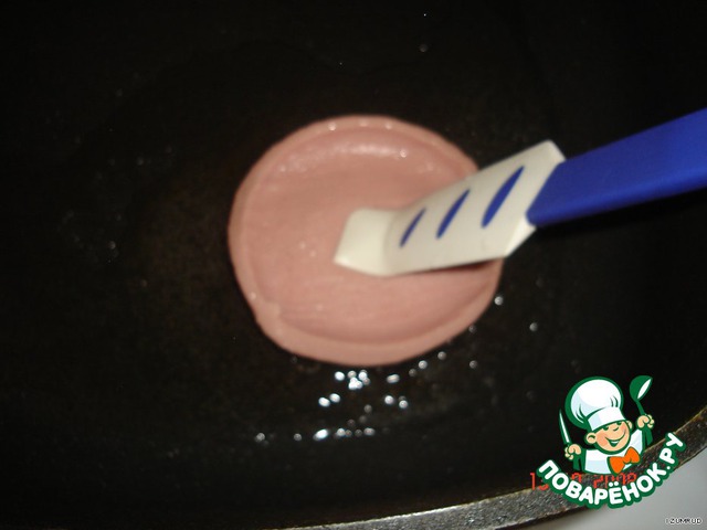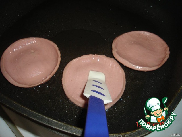 | Обжаривала колбасу и обратила внимание как края поднимаются :) и сразу родилась идея! |