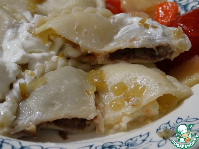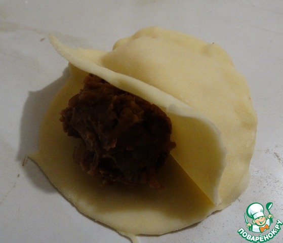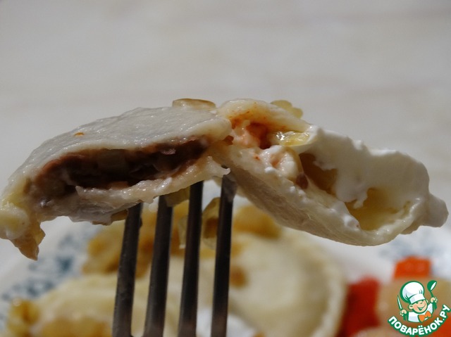 В этом варенике с одной стороны сыр, с другой начинка из фасоли.