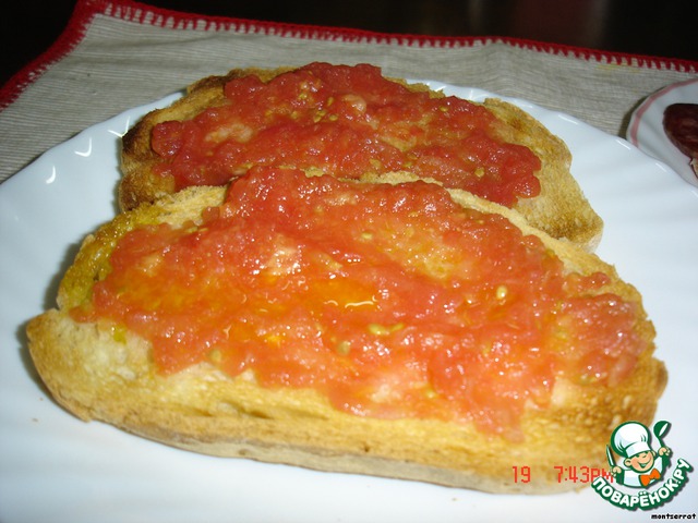| Хлеб, приготовленный таким способом, в Испании можно увидеть в любом баре, ресторане. Его едят как отдельное блюдо на ужин, совместно с копченостями, на обед. Одно из самых любимых и известных в Испании. Готовится очень просто. |