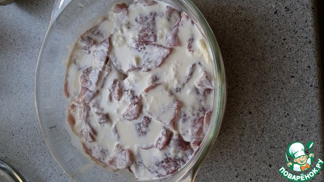 Теперь выкладываем наше мясо. Которое мы заранее приготовили.