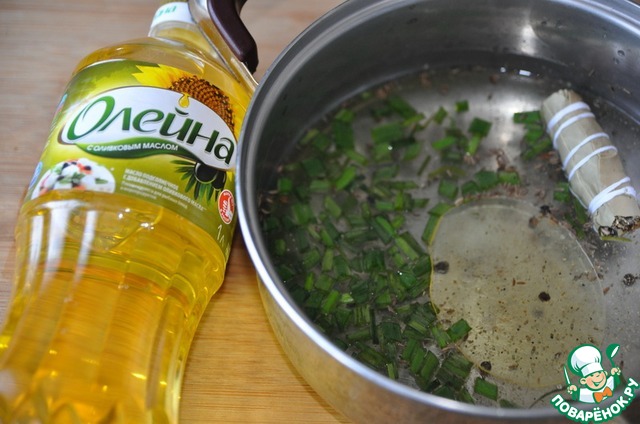 Добавляем масло подсолнечное с добавлением оливкового "Олейна" и порезанный зелёный лук.