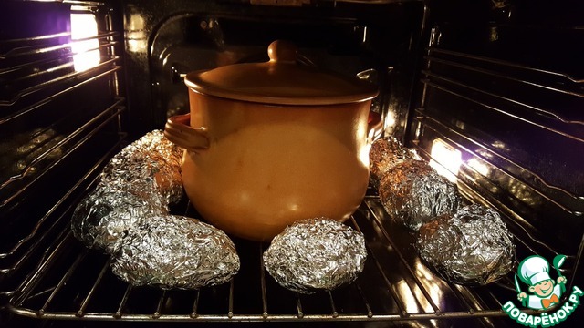 Накрываем крышкой и отправляем в разогретую духовку на 80 минут. Ориентируйтесь на Вашу духовку!!! Мясо, особенно говядина бывает очень разным. Через час моя говядина была уже мягкой, но я решила подержать её ещё 20 минут в духовке!!!
