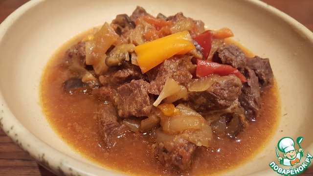 | Вкусная сочная говядина, запечённая с овощами. Благодаря соевому соусу и овощам получается достаточно приличное количество вкуснейшей подливы. Прекрасно сочетается с рисом, гречкой или картофелем. Угощайтесь. |