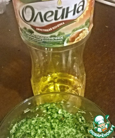Пекинскую капусту, петрушку, укроп, растительное масло "Олейна", соль и перец взбить в блендере