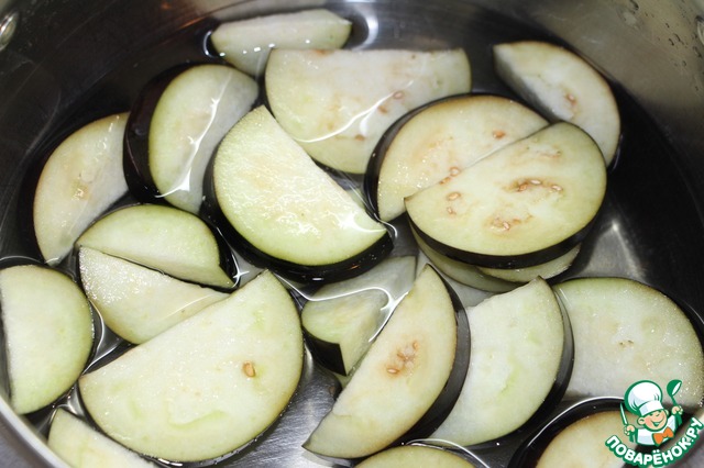Баклажаны нарезать шайбами или полушайбами, если баклажан толстенький, присолить на 20 минут. Затем промыть, отжать.