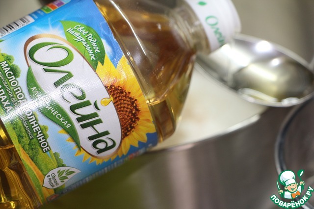 Влить подсолнечное масло Олейна.