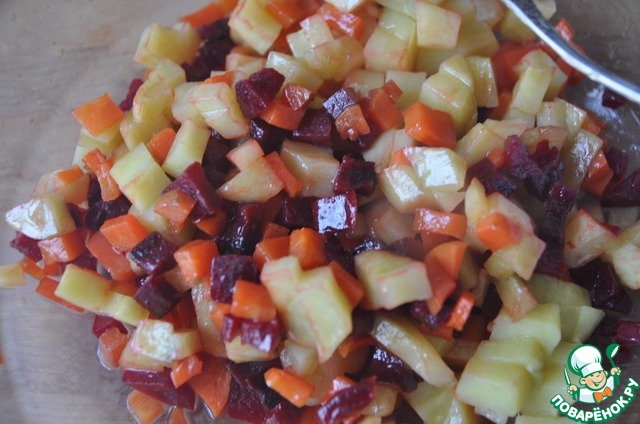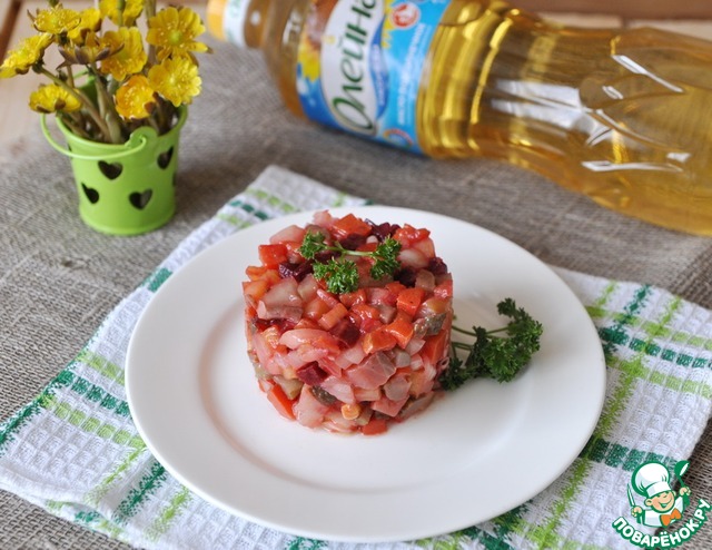 | Хочу предложить вам рецепт винегрета с двумя разными видами рыбы, такое блюдо можно позволить себе в Пост в разрешённые рыбные дни. |