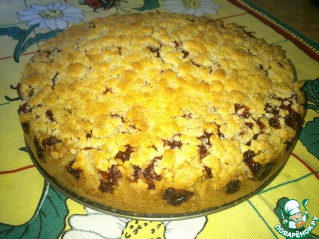 А теперь достаем нашу крошку из холодильника и засыпаем ею бруснику. Отправляем в разогретую духовку на 45-50 мин. Ориентируйтесь на свою духовку.