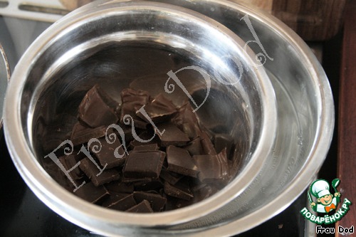 Половину горького шоколада поломать на кусочки и медленно растопить на водяной бане.