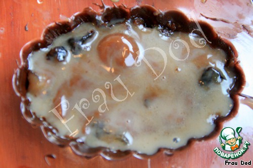 Нарезать мягкие сухофрукты, перемешать, выложить в основание шоколадных тарталеток.