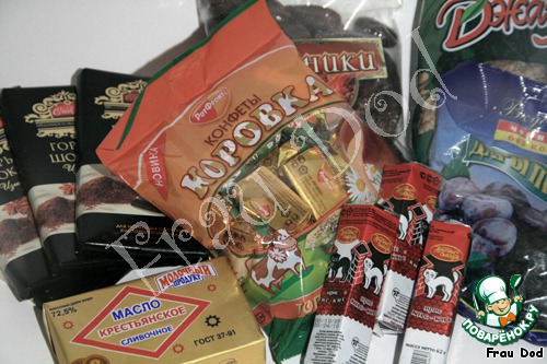В журнале "Школа гастронома" в рецепте вместо сгущенки использовались конфеты "Коровка", но я случайно купила не ту коровку, поэтому заменила ее на сгущеное молоко.