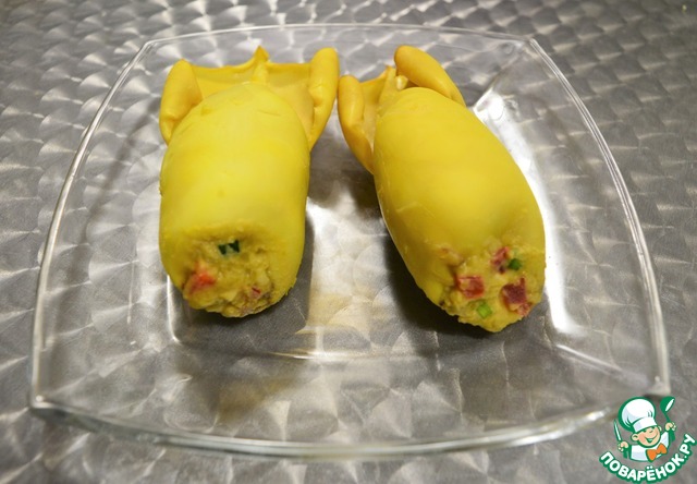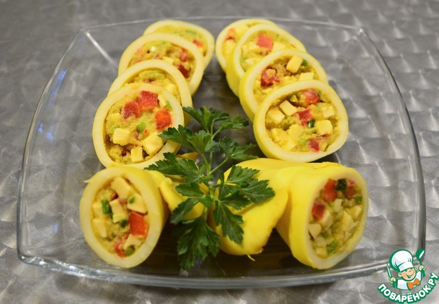 | Фаршированный таким образом кальмар - лёгкая и вкусная закуска. |