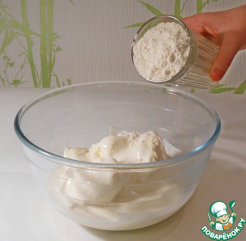 Добавляем просеянную муку, разрыхлитель.