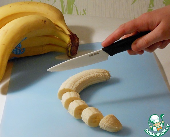 Чистим и режем на кусочки банан.