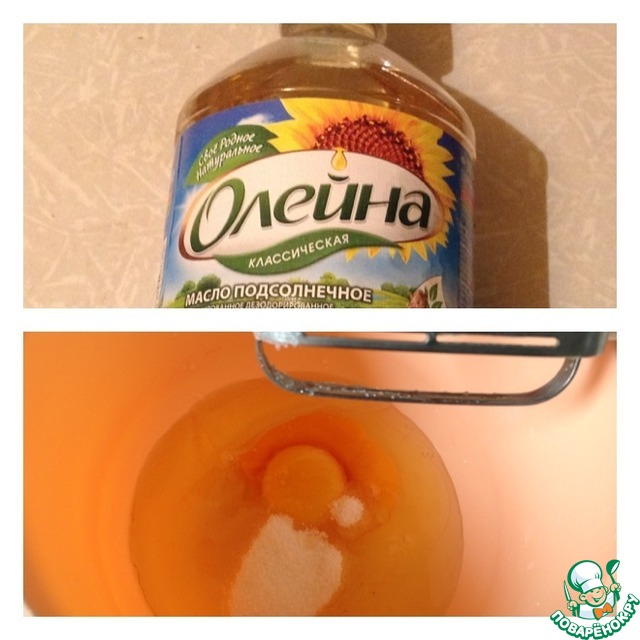 Яйца взбить с солью, сахаром, ванилином и маслом.